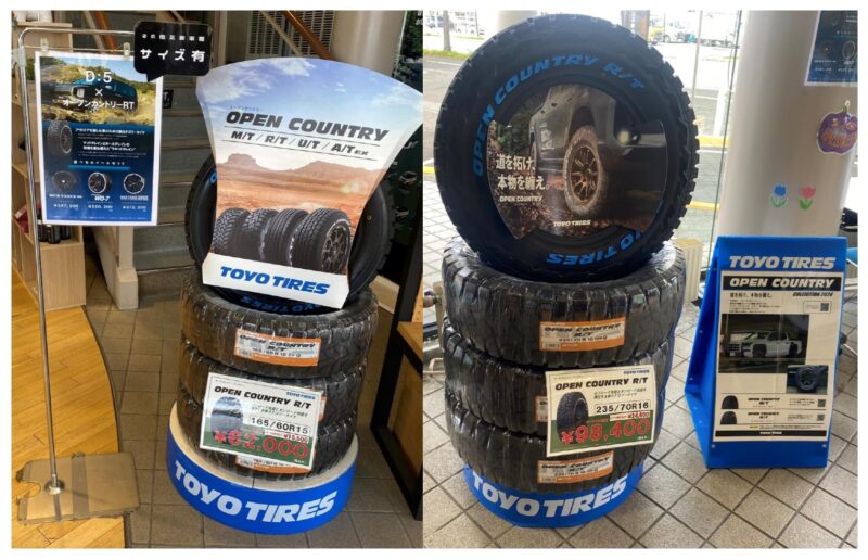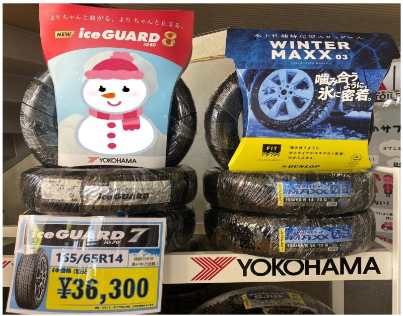 旭川店ではヨコハマ、トーヨータイヤ、ブリヂストンなど人気メーカーのタイヤの販売もしています