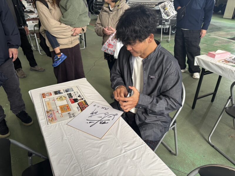 その後はカスタムカー展示場へ移動し、カスタムカーを見ながらトークをしていただきました!その合間に、スタッフとも気さくに記念撮影に応じていただきました!ありがとうございます!