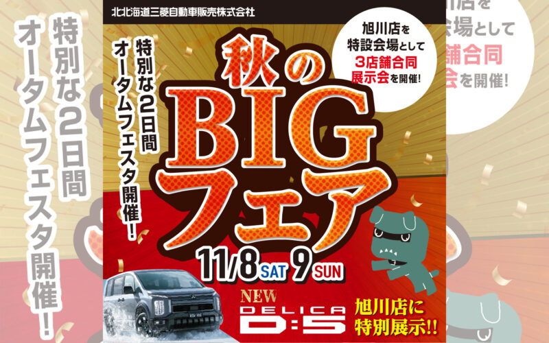 おかげさまで北北海道三菱は誕生1周年を迎えることができました!日頃のご愛顧に感謝を込めて、10月20日(土)・21日(日)は旭川・神居・空知3店舗にて誕生1周年祭を開催させていただきます!