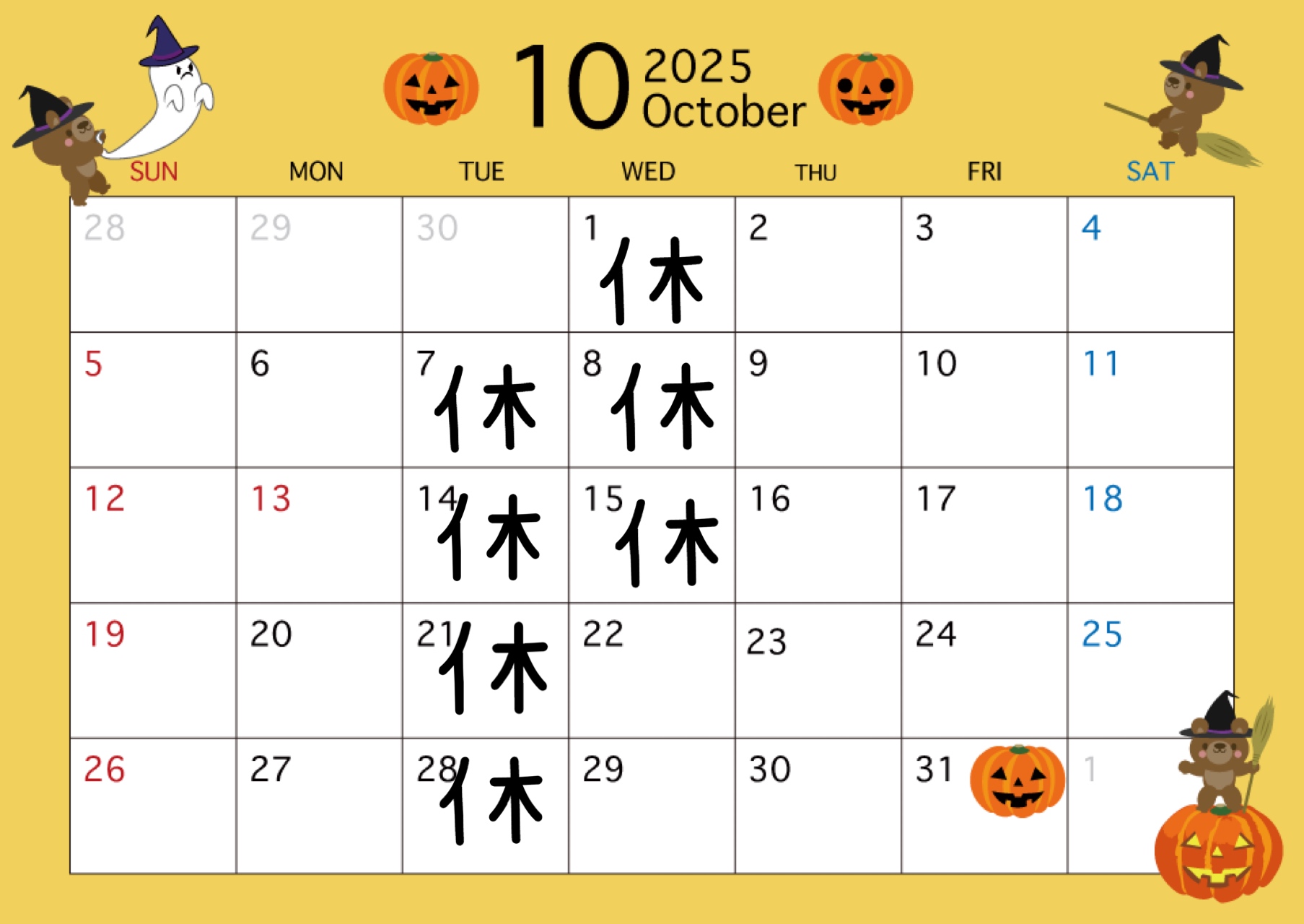それでは、本日は10月の営業日のお知らせです🎃